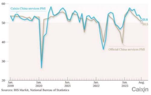 Some data points out of Asia in the last week – Caixin China General Services Business Activity Index, which provides an independent snapshot of operating conditions in services industries such as retail and travel, dropped to 51.8, the lowest this year in China.