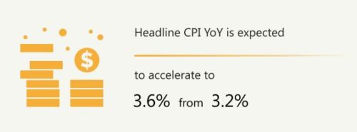 Apart from CPI on Wednesday, we will have retail sales, industrial production and PPI to cap the week’s releases. Headline CPI YoY is expected to accelerate to 3.6% from 3.2% whilst the monthly core CPI is expected to come in unchanged at 0.2%. No Fedspeak this week as the blackout period starts for the next FOMC meet.