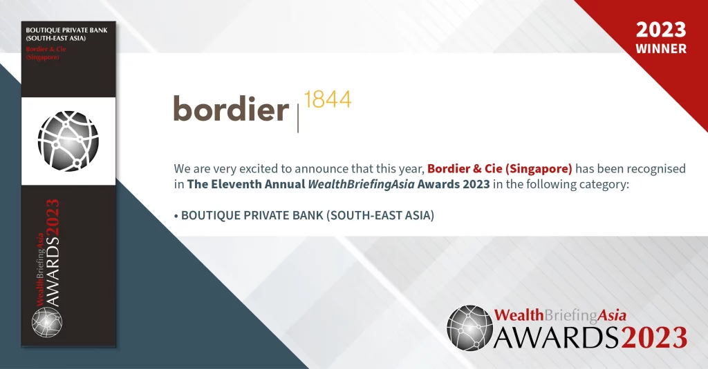 Leading wealth management industry participant, Bordier & Cie (Singapore) has been selected as a winner in the ‘Boutique Private Bank’ category at The WealthbriefingAsia Awards 2023.