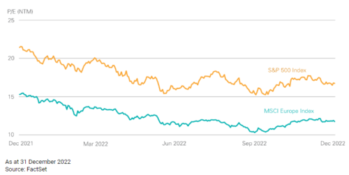 European consumer stocks should also gain from China’s reopening after the relaxation of its zero-COVID policies. Since companies within the MSCI Europe Index derive 7% of their revenues from China, versus 3% for S&P 500 Index constituents, Europe’s popular consumer brands are particularly well placed to profit from a more upbeat ‘spending-deprived’ Chinese consumer.